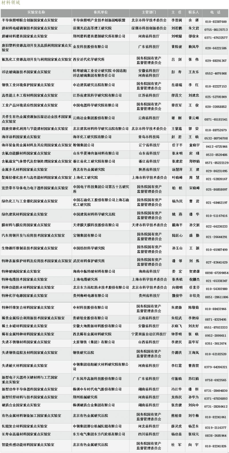企業(yè)國家重點實驗室通訊錄(截止至2016年底)