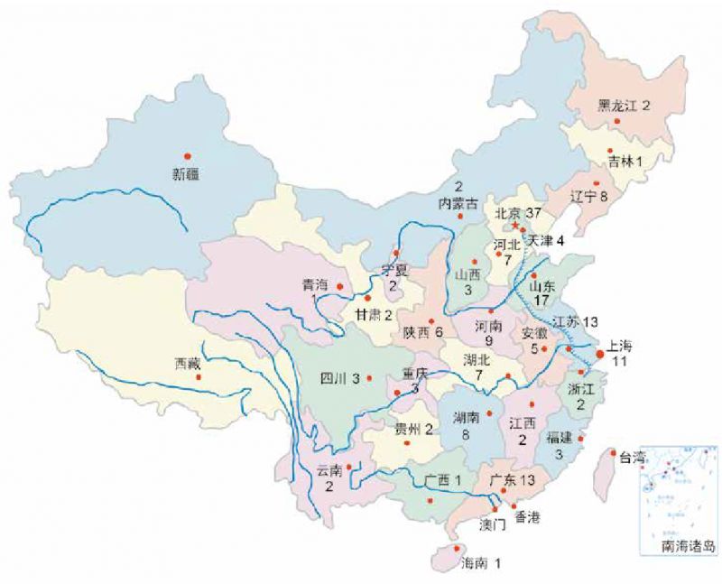 國家重點實驗室分布在全國25個省、自治區(qū)和直轄市,其中北京市79個,上海市32個,江蘇省20個,湖北省18個,陜西省13個,基本反映了我國基礎(chǔ)研究力量的地域分布。